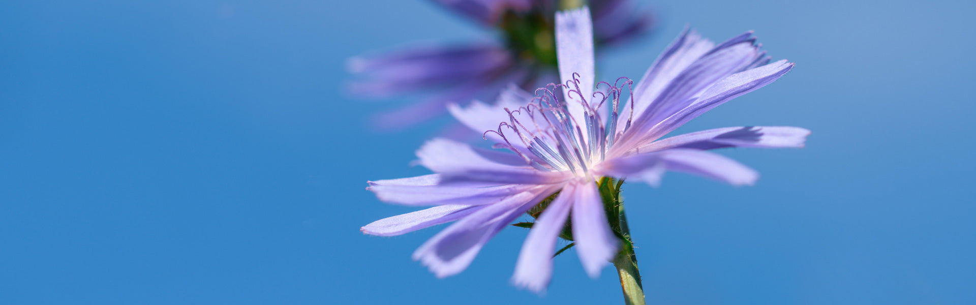 La chicorée (Cichorium intybus) est une plante vivace de la famille des Astéracées, qui se nomme également chicorée sauvage, chicorée amère ou même herbe à café. Elle pousse à l’état sauvage dans les fossés, les prairies et aux abords des champs. Ses fleurs bleues deviennent légèrement roses en fonction de l’ensoleillement, jusqu’à complètement se refermer à la nuit tombée.